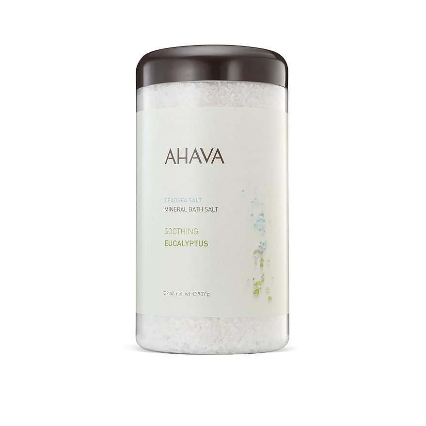AHAVA Dead Sea Mineral Bath Salt, Soothing Eucalyptus - Intense Relaxation for Body & Mind, Elevates Moisture, Softens & Eases Sore Muscles, Enriched by Exclusive Dead Sea Salt & Osmoter blend, 32 Oz