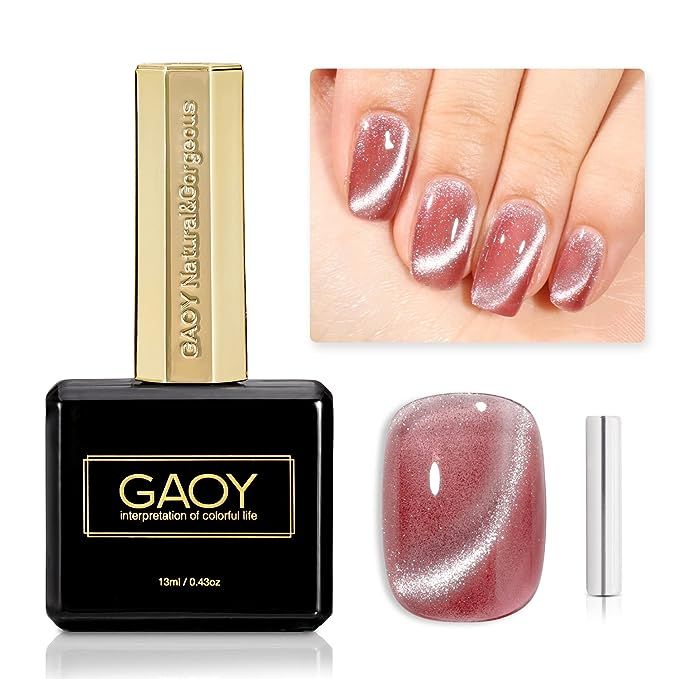 GAOY Magnetic Gel Nail Polish, Jelly Cat Eye Holographic Nail Polish, 13ml Glitter UV Gel with Magnet, Pink