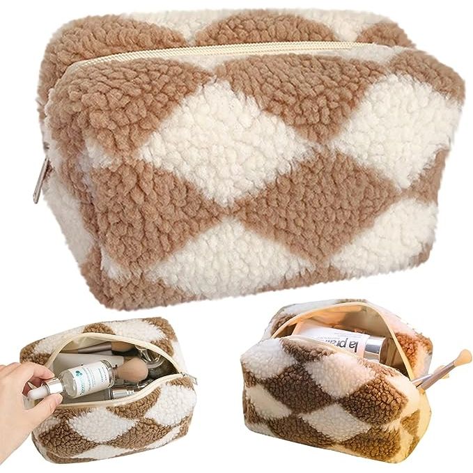 This multifunctional pouch not only serves as a makeup bag for women but also doubles as a stylish stationery bag. Made with high-quality plush and fleece, it provides a comfortable feel and excellent sense of use. Store all your makeup brushes, small objects, and more in this durable and lightweight bag. Your makeup, eyeliner, face cream, lipstick, and other cosmetics will be standardized and protected.