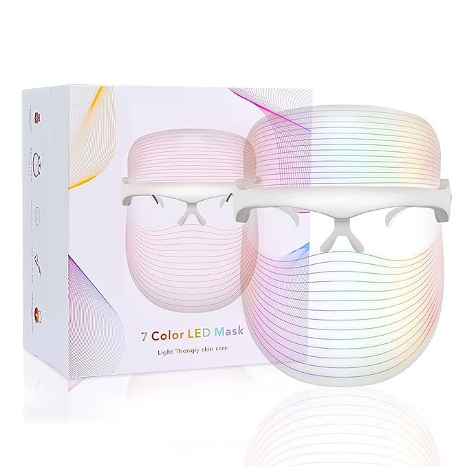 haoyehome Upgraded 7 Color LED Face Mask Light Therapy, led mask therapy facial LED suitable for home skin care, light therapy mask Portable & Light, Rechargeable, Wireless (white)