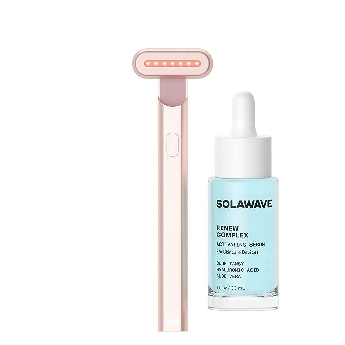 Solawave 4-in-1 Radiant Renewal Wand and Serum Bundle, Face Skincare Wand with Facial Massager, Facial Wand with Renew Complex Serum (Rose Gold)