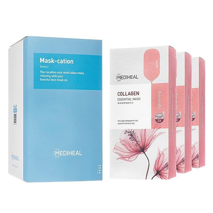 Mediheal Official Best Korean Sheet Mask - Collagen Essential Face Mask 30 Sheets Lifting and Firming For All Skin Types Value Sets
