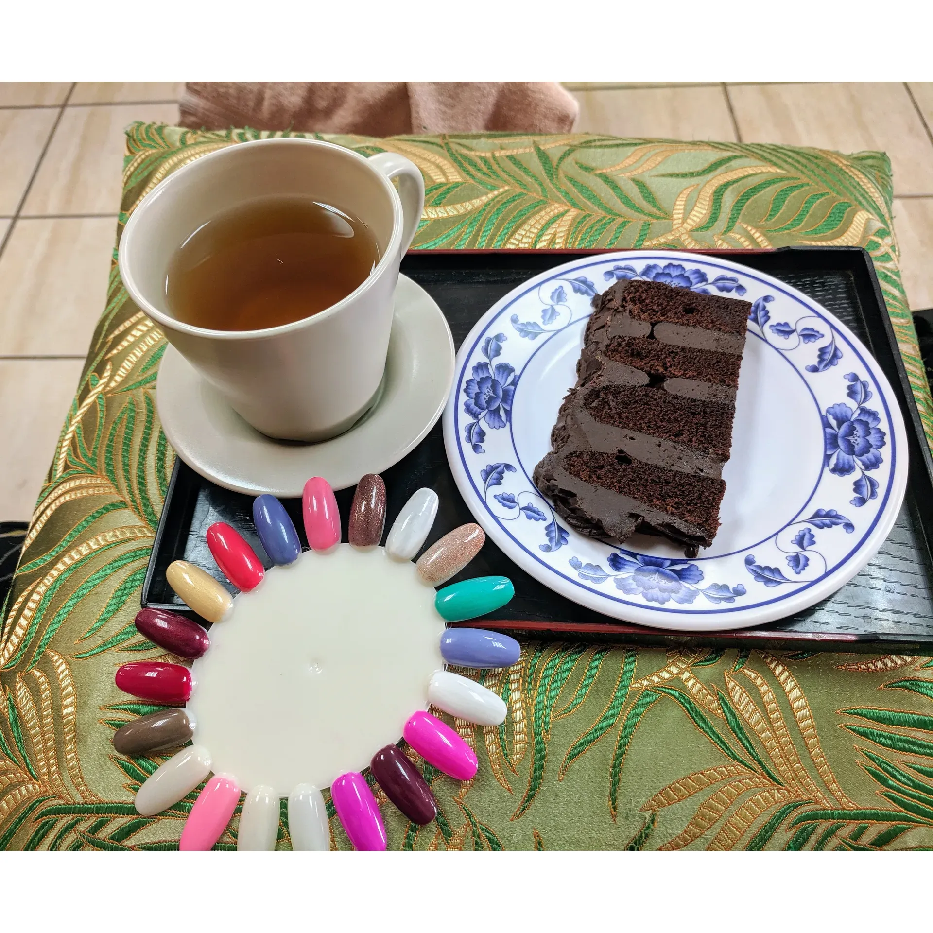 Heightening the senses, Rosy Heels pairs beauty services with delightful extras, such as steaming hot tea and a delicious slice of cake, transforming a routine visit into a mini-celebration of self-care. And while the vast selection of vibrant polish colors invites you to express your individual style, the ambiance remains serene, without the intrusive aroma of nail polish fumes.