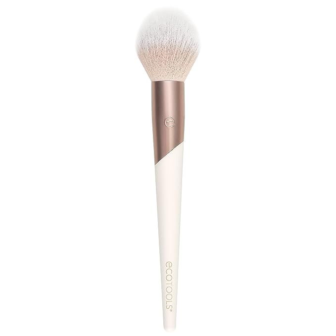 Introducing the EcoTools Luxe collection loose powder brush, a cruelty-free and vegan option for achieving a flawless and effortless look. Made with beautifully soft bristles, this brush offers a gentle and luxurious application experience. Ideal for powder, bronzer, and blush, its versatile design ensures a perfect finish every time. The tapered head of the brush allows for maximum powder pickup while providing a light and natural application. As part of EcoTools' commitment to the environment, this brush is made with 100% post-consumer recycled materials. Say goodbye to animal cruelty, as this face powder brush is PETA certified and never tested on animals. With its eco-friendly approach and high-quality craftsmanship, this loose powder brush is an essential tool in your skincare and makeup routine. Description by ChatGPT.
